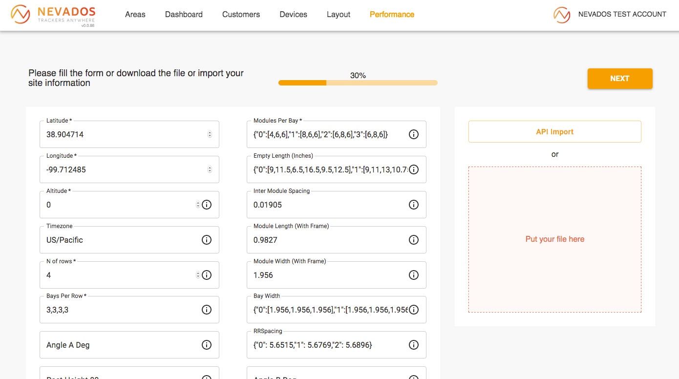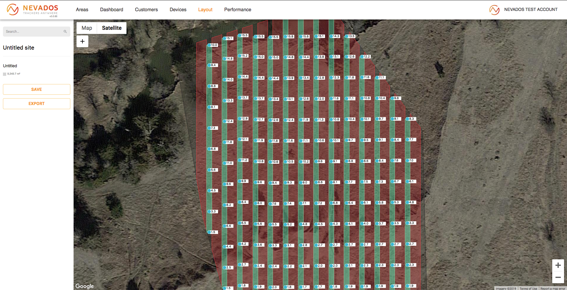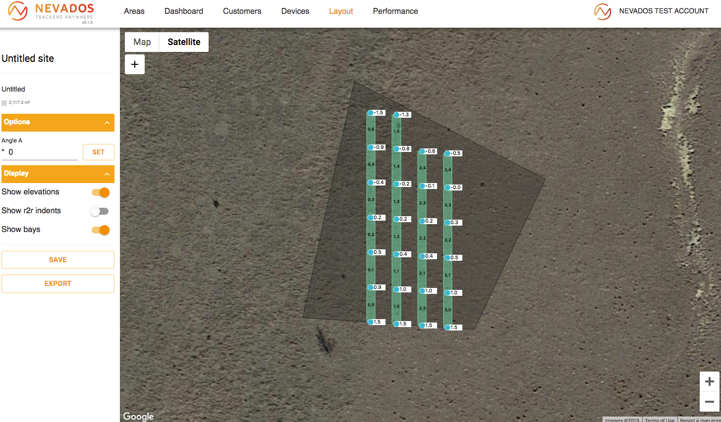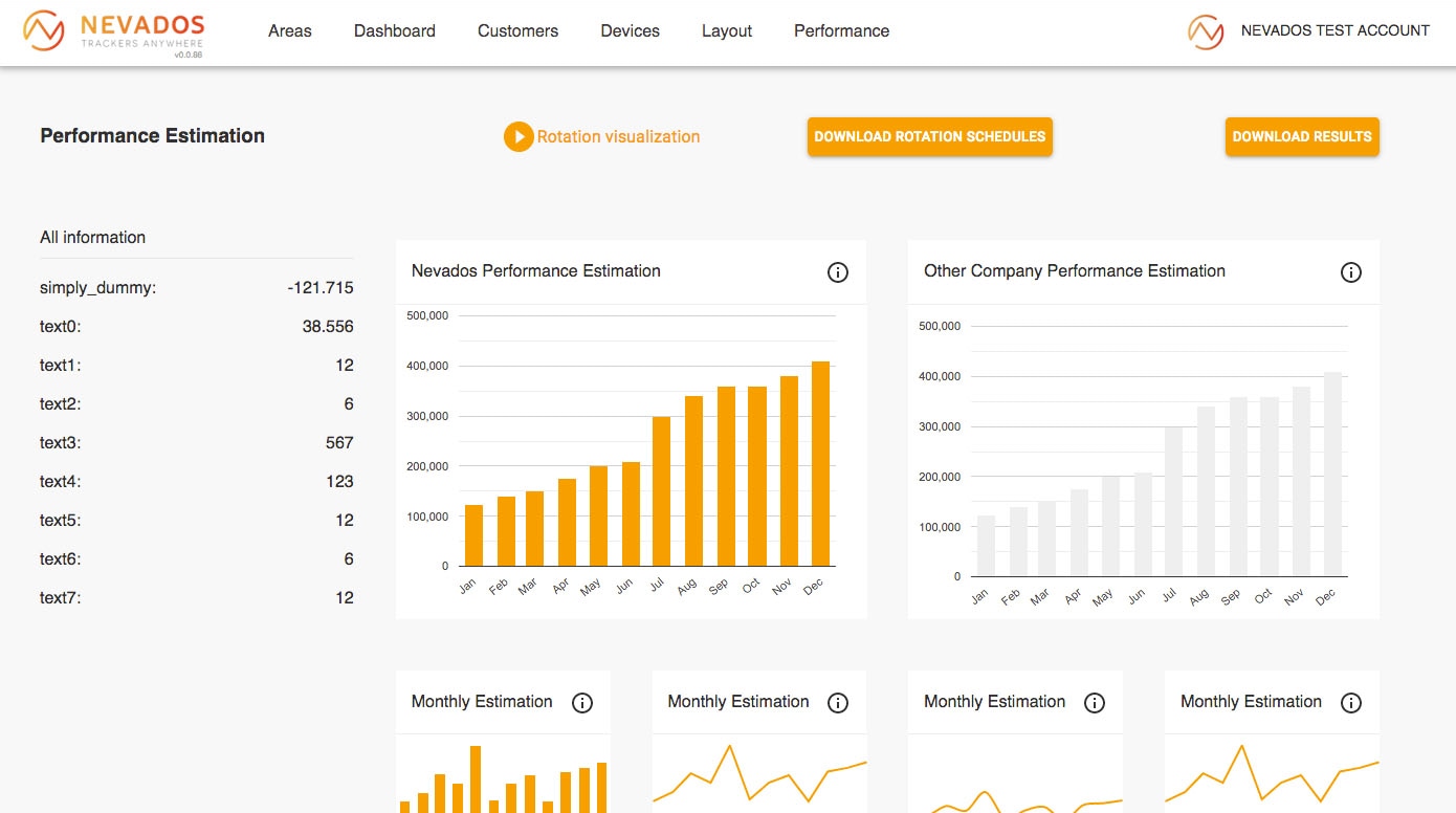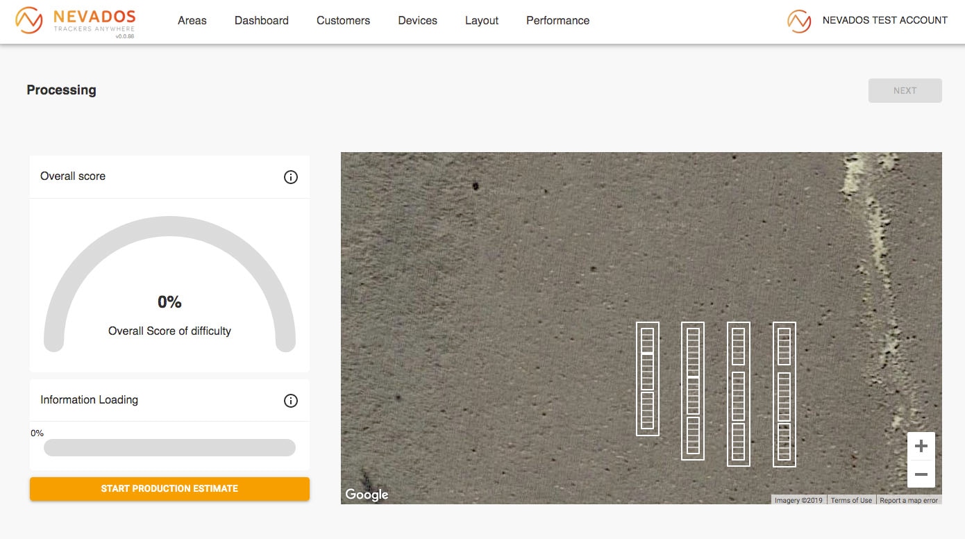 Nevados is a system for creating and managing solar power plants. It is comprised of two parts: hardware that physically adjusts the angle and rotation of solar panels, and software for remote control. Customers can register in the system, then use a map to delineate their site. Subsequently, an algorithm calculates the optimal placement, orientation, and quantity of the panels.
