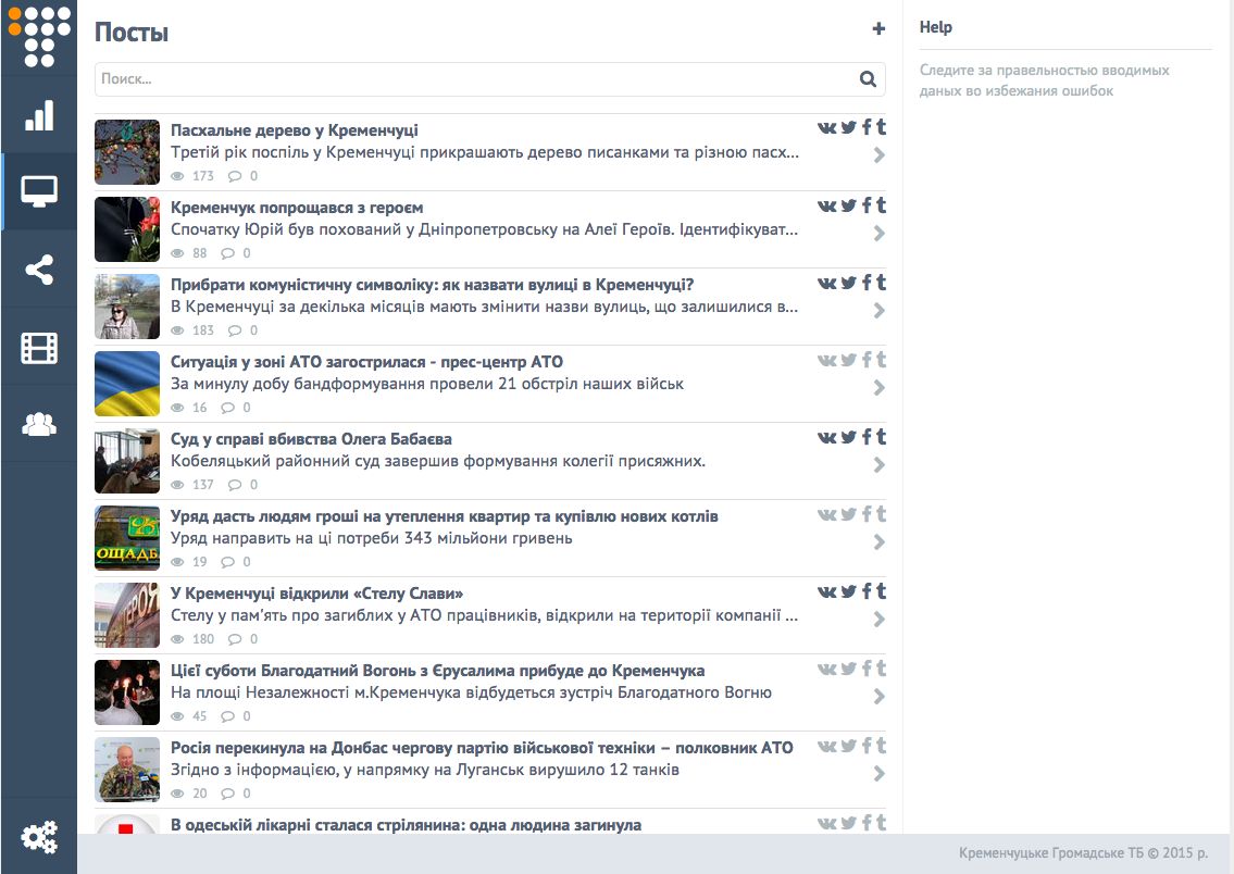 - A social media news publisher. This feature allowed journalists to create a news item and distribute it across all social platforms where Hromadske TV had a presence, all with a single click.