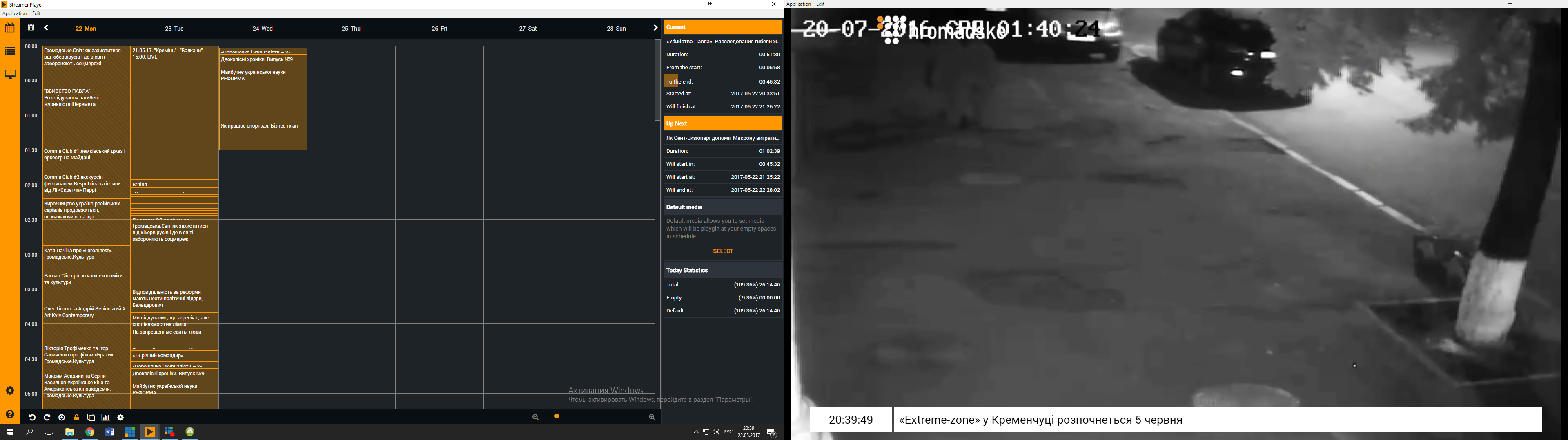 Later, I developed a standalone application on Electron, named Streamer. This application, intended to generate television broadcasts, was split into two windows. The first window functioned as a calendar, allowing easy scheduling of videos, live broadcasts, and advertisements while showing what was currently playing on-air. The second window served as a broadcast playback window, which was then captured by the computer and broadcasted on-air.