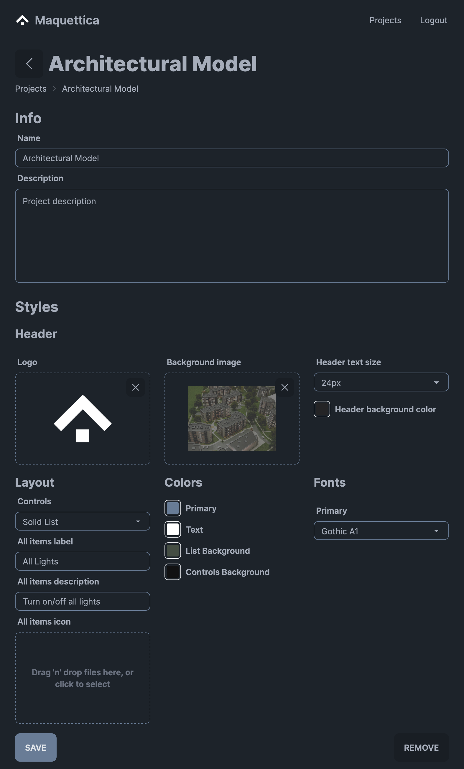 Maquettica is an app designed to control and animate physical architectural models built by “Maquettica Architectural Models.” It allows users to manage lighting, movement, and other functionalities from their mobile devices, making it ideal for design presentations, museums, architects, and real estate developers.